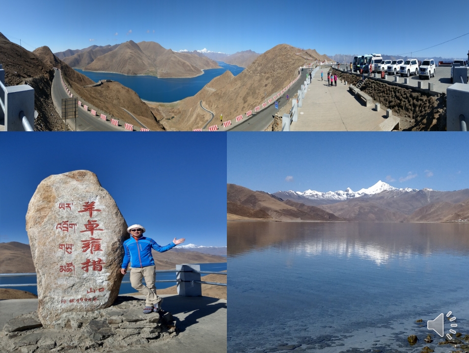 早餐後,分配好車輛我、水餃哥及毛大哥共乘由李師傅駕駛編號5號吉普車,前往日喀則,途中我們經過曲水大橋,沿途欣賞雅魯藏布江最美的景觀,離開拉薩後登上海拔4768公尺岡巴拉山口,從山口上遠眺西藏的三大聖湖之ㄧ【羊卓雍措】,天氣非常好,得以讓我們一窺羊卓雍措的美!美景讓我們流連忘返,李大哥第二次開直播,大家都高興的向FB上的朋友打招呼,依依不捨的我們順著羊卓雍措的湖邊前往江孜及日喀則。