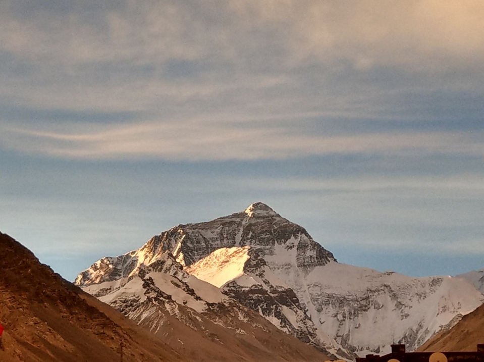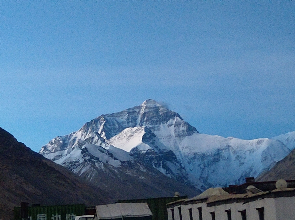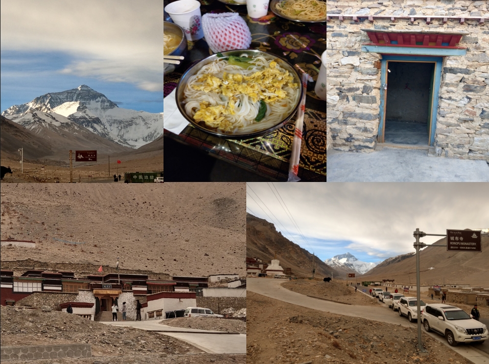 站在招待所或絨布寺前的任何一個地點,都可以拍攝及觀賞珠穆朗瑪峰,因為天氣真的太好,珠穆朗瑪峰非常完整的呈現在面前,讓我們備感幸福,晚餐在招待所內享用,只有雞蛋麵及炒麵,由招待所內餐廳的窗戶即可觀賞珠穆朗瑪峰,可以不用吹著寒風到外面,真的非常幸福,這個餐廳有在電視節目中出現及介紹過,而我現在就坐在餐廳內,一切的一切都太難相信了,讓我非常的滿足!