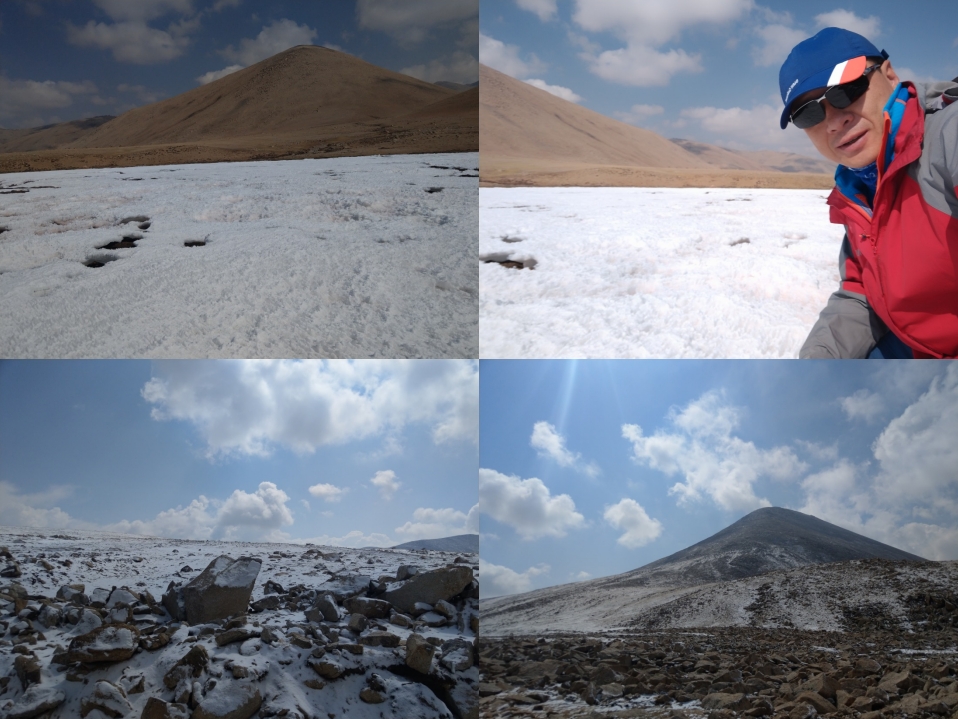 一開始我們就一直趕路,走的又是土路,除了偶有野驢外並未有太多其他的野生動物、一直往上攀開始發現野髦牛1頭、2頭….最後總共發現10多頭的野髦牛,野生的髦牛比一般的髦牛大上許多,也非常的危險,在車子抵達最高點海拔5110公尺時,山頂是一片銀白色的世界非常漂亮,昨晚下了一場雪,我們這團真的非常幸運,大家下車狂歡了一下!
