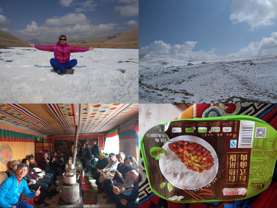 餐後繼續趕路,亞熱鄉真的非常的大,車子開了約3-4小時才到有學校的地方,所以該對姐妹沒法念書的原因,應該就是距離。途中我們經過一處山口,海拔5510公尺,整個山頭都呈現銀白世界,美不勝收,團員們紛紛下車拍照,水餃哥一時興起脫光上衣,大家都玩瘋了!