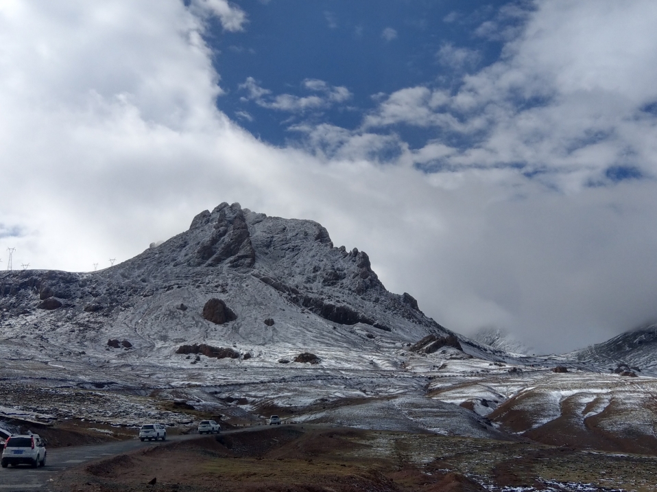 途中經過那根拉山口(海拔5190公尺),對於這個山口強風印象深刻,下車拍照、錄影,周遭銀白色的山頭,非常美麗!