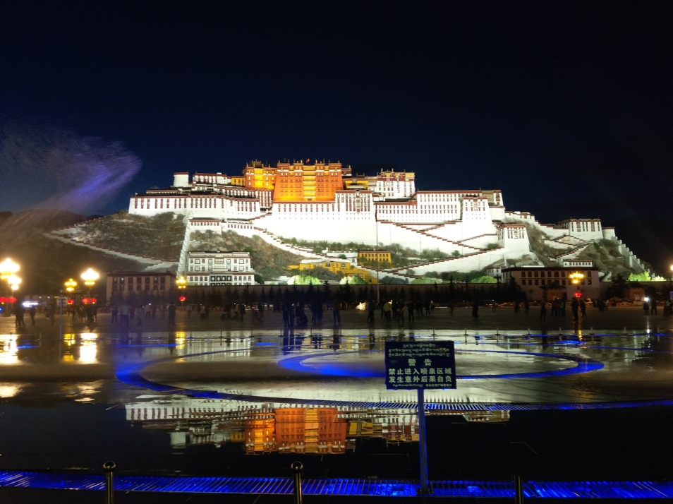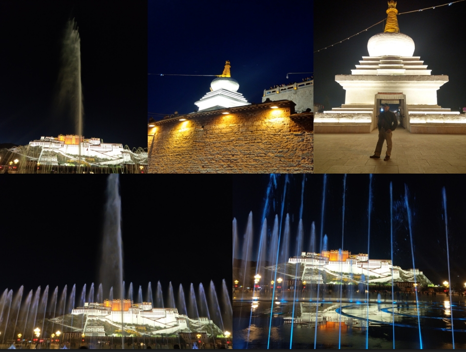 布達拉宮夜拍,在我第一天到拉薩時就來過,只是這次早一 點,可以遇到噴水的美景,整個美到不行,我們一直到噴水結束,才漫步的逛回飯店,途經水果攤倩舲姐要買香梨,剛好旁邊有名產店,逛一下就買了不少的名產,因為都不貴,呵呵!