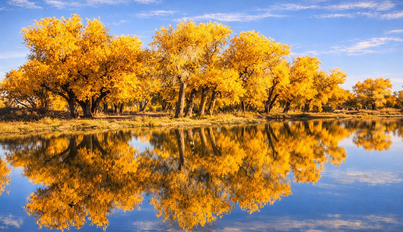 每到秋季整片胡楊林將變成金黃,照亮整個額濟納。在大漠風光遇見如此奇觀,讓人感受生命頑強的力量。