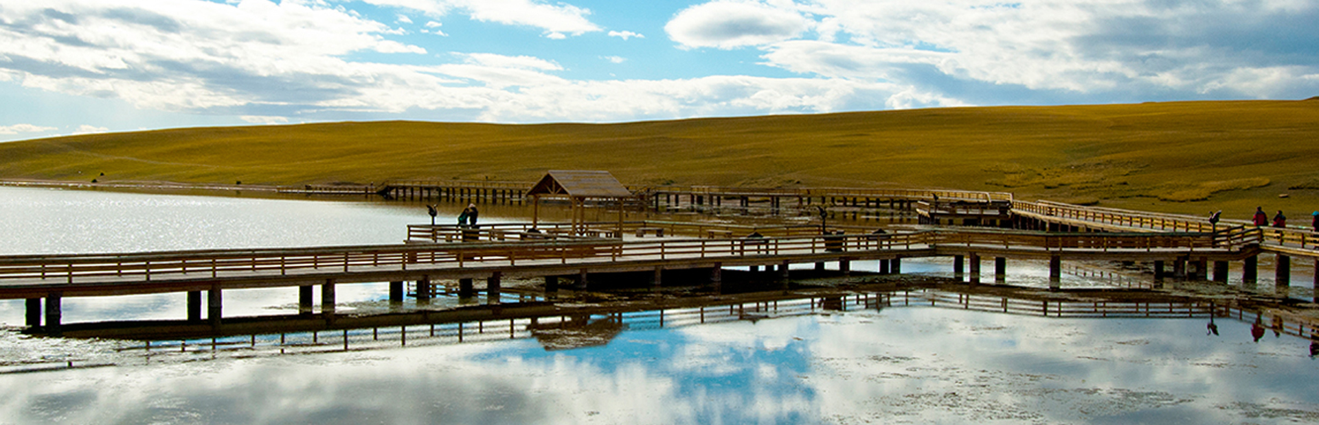 【天鵝湖】天鵝湖是由眾多相通的小湖組成的湖沼地。每年4月前後,大天鵝、小天鵝、疣鼻天鵝、雁鷗等珍禽鳥類陸續從南方飛回到這裡繁衍生息,陽光下,天鵝、湖水、山峰、雲影融成一片極為壯觀的景致。區內建有觀鳥台供遊人登高觀賞鳥類。中國惟一的天鵝自然保護區就坐落在大草原中。