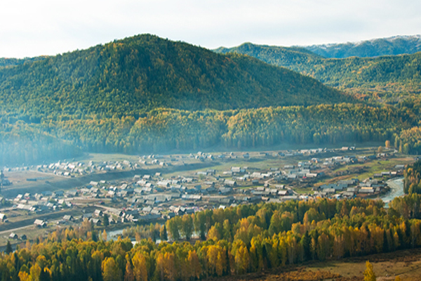 【禾木村】禾木村曾被農業部評為“中國十個最有魅力的休閒鄉村”,這是新疆唯一獲此殊榮的鄉村。素有“中國第一村”的美稱,禾木之美,在於它濃郁的民俗風情和原始的山水風光。在鬱鬱蔥蔥、群山環抱、綠草如茵的河谷裡,禾木村靜靜地躺著,圖瓦人的尖頂小木屋、牲口圍欄,隨意地散落在村子的各個角落。禾木河在綠樹的掩映中從村子旁嘩嘩流過。淡淡的水汽在樹林上空形成一條蜿蜒的白絲帶,飄蕩在村莊與大山之間,增加了一絲神秘色彩。