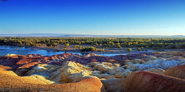 被譽為“天下第一灘”的五彩灘,位於一河兩岸,南北地勢各異,色彩斑斕。