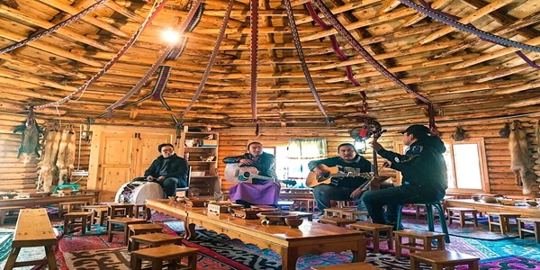 圖瓦人是相當古老的遊牧民族,一直以來主要依靠放牧和狩獵來維持生活。他們的語言是突厥語系,是一種很稀有的語言類型,他們在木屋裡接待了我們,在擺滿酥油茶、葡萄乾等瓜果的長桌邊,有個圖瓦族人給我們介紹了圖瓦人的生活習性,以及語言、文化、音樂、舞蹈等!圖瓦人為我們展示他們的民族文化的才藝表演。展示圖瓦人特有的樂器,吹奏“楚爾”,這種出乎意料的“旋律”,扣人心扉。而空靈、悠遠的曲調讓人的心得己寧靜。