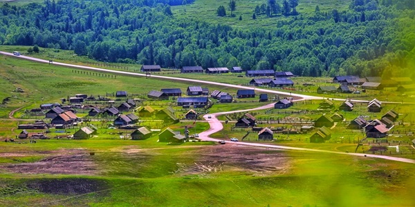 曾被農業部評為“中國十個最有魅力的休閒鄉村”,這是新疆唯一獲此殊榮的鄉村。素有“中國第一村”的美稱,禾木之美,在於它濃鬱的民俗風情和原始的山水風光。在鬱鬱蔥蔥、群山環抱、綠草如茵的河谷裏,禾木村靜靜地躺著,圖瓦人的尖頂小木屋、牲口圍欄,隨意地散落在村子的各個角落。禾木河在綠樹的掩映中從村子旁嘩嘩流過。淡淡的水汽在樹林上空形成一條蜿蜒的白絲帶,飄蕩在村莊與大山之間,增加了一絲神秘色彩。