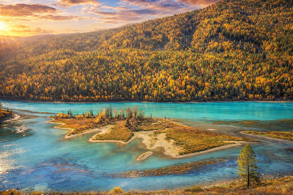 早餐後欣賞自然景觀--禾木村晨霧,禾木晨霧是禾木村的著名景觀,被譽為“神的自留地”。禾木的清晨,夢幻般的村莊,是現存規模最大的圖瓦人村落。清晨的陽光透過薄薄的晨霧灑在大地上,映襯著炊煙嫋嫋的木屋與遠處的山巒,構成了一幅令人驚歎的畫面。之後前往喀納斯河在這裡造就的三處最具代表性的河灣景觀。其中「神仙灣」位於清晨薄霧最易聚集之處,彷彿仙人暫歇之所,因而得名,此地之美,勝在靜與「氣」,不在張揚,接著河道在此形成優雅的 S 形弧線,形似新月伏臥林間,因此被稱為「月亮灣」,是喀納斯最具曲線美的地段,最後河道收窄,水勢加快,中間沙洲形如一條伏臥的巨龍,因此命名為「臥龍灣」。三灣連珠,一靜、一柔、一雄,正好構成喀納斯山水的完整氣質:霧為魂,水為脈,林為衣,山為骨,晚餐後入住酒店休息。