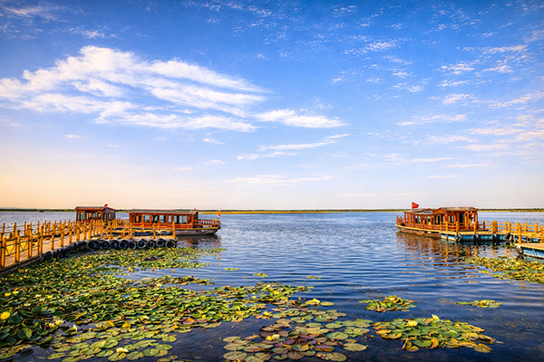 早餐後…乘動車前往庫爾勒。接客午餐之後參觀[博斯騰湖]。這是中國最大的內陸淡水吞吐湖之一,也是古絲綢之路北道上的重要水域樞紐。湖面遼闊如海,煙波萬頃,遠山、濕地、蘆葦蕩與水天相接,使人恍若置身「沙漠邊緣的藍色王國」,展現出北疆少見的溫潤與柔美,是新疆一段水寫的抒情詩。之後繼續乘車前往庫車,晚餐後入住酒店休息。