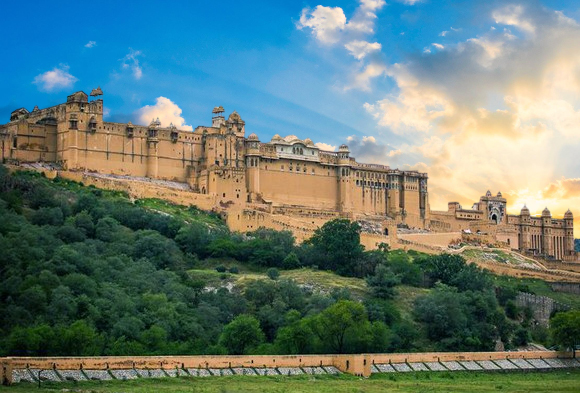 安珀城堡 Amber Fort:建築於山丘上的安珀城堡,是一座居高臨下巨大城堡。這裡是喀加瓦王國(Kachwaha安珀王國)的首都;包括有象頭神門、公眾大廳、歡喜廳、勝利廳、蒙兀兒花園等。在市內設計了水道環繞四周,可以想像曾經在此度過涼快、舒適生活的王公家族歡樂宴會的場所。勝利廳的四周牆壁鑲著寶石和彩色玻璃鏡片,由如萬鏡之宮般的(鑲嵌鏡片和彩色寶石手法,與泰姬瑪哈陵如出一轍),富麗堂皇之精緻,可說是堡內最美麗的宮殿。