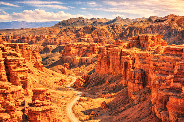 清晨在異鄉用過早餐之後,前往哈薩克東南部,中亞最壯觀的峽谷地貌「洽倫峽谷國家公園」Charyn Canyon National Park,這裡是由河流與風蝕在千萬年間雕刻而成。著名的「城堡谷」岩塔林立,如廢棄石城,色彩由赭紅至金橙,日落時尤為震撼。峽谷底部綠洲與古老白楊林形成特殊生態帶,荒野與生命並存。徒步其間,可近距離感受地質時間的尺度,與草原文明的空曠靜謐,是兼具自然奇觀與哲學氣質的旅行現場。