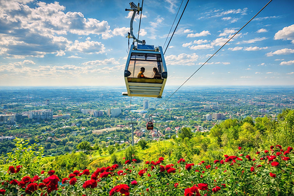今早前往阿拉木圖的熱門旅遊景點,也是當地人最喜歡的【綠色山丘Kok-Tobe】(車上/纜車下)。這座小山海拔1130米,比阿拉木圖的相對高度高200米,可以俯瞰阿拉木圖的城市全景,位於阿拉木圖的東南邊緣。午餐後前往阿拉木圖國際機場搭機飛往中亞的瑞士–吉爾吉斯坦。