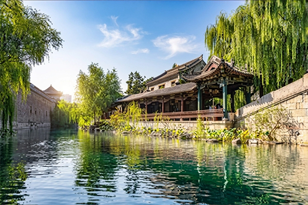 飯店內享用早餐之後,前往淄博周村區,參觀北方保存最完整的明清商業街區之一,被譽為「中國活著的古商業建築博物館群」的【周村古商城】,商城由大街、絲市街、銀子市街等多條商業街組成,街區縱橫、店鋪密集,完整保留「前店後宅」的傳統商業模式,反映出早期中國商業運作的基本邏輯:交易、居住與生產高度整合。之後前往位於濟南章丘區,參觀【明水古城】,這裡是近年打造的文化旅遊型古城項目,以章丘豐富的地下泉源,所構成古城內的水道縱橫、小橋串聯,形成典型的「北方版江南水鎮」。然後在泰山腳下,享用正宗魯菜。魯菜(山東菜)是中國歷史最悠久、影響力最大的八大菜系之首,以「食不厭精,膾不厭細」為核心,特色為鹹鮮為主、注重火候、善烹海味與擅長製湯,並以爆、炒、燒、扒、塌等技法著稱。晚餐之後入住飯店休息。