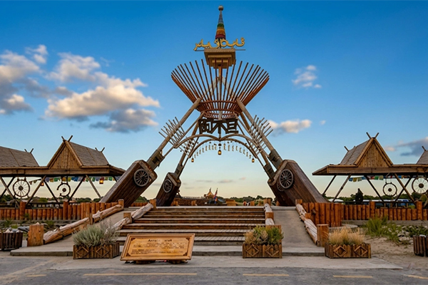 早餐後乘車前往【羅布人村寨景區】參觀遊覽,羅布人村寨景區以羅布文化為靈魂,以生態建設為基礎,以綜合資源開發為目標,以民俗文化、探險旅遊為特色,是一個集沙漠、胡楊、河流、湖泊于一體,自然景色各異,生態環境優美的旅遊區。景區內有千姿百態的原始胡楊林,塔里木河與渭幹河在這裡交相輝映,中國面積最大的塔克拉瑪幹沙漠在景區南面,連綿起伏,茫茫無邊。遊覽結束後,入住庫爾勒酒店休息。