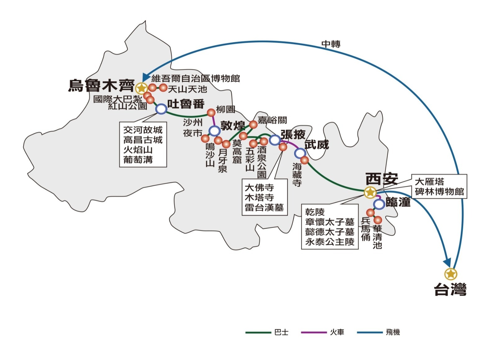 循著駝鈴的回聲,走進飛天壁畫所描繪的精神世界。行程自西域綠洲啟程,穿越大漠、石窟、關城與古都,從吐魯番、敦煌一路抵達長安。這是一趟結合絲路交通、宗教藝術與盛唐文明的深度行旅,在風沙與樂音交錯之間,重讀東西文明相遇的歷史篇章。