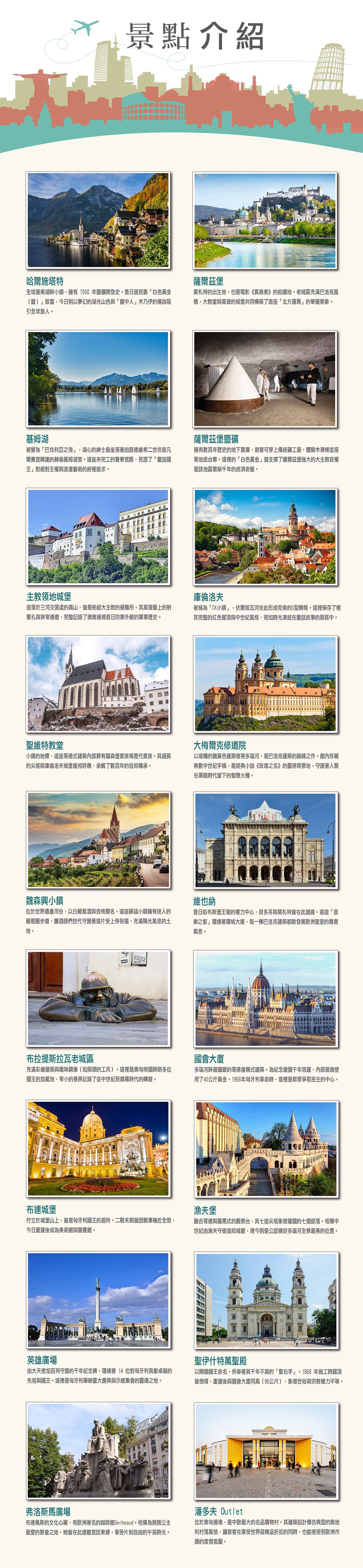 《翡翠假期》德奧捷斯匈・世界遺產・莫札特出生地・明信片裡的世界・湖中宮殿秘境・地底鹽礦體驗・三合之城・葡萄園小鎮・百年教堂・丘陵古堡・多瑙河明珠・享受茜茜公主午茶時光・名品購物天堂