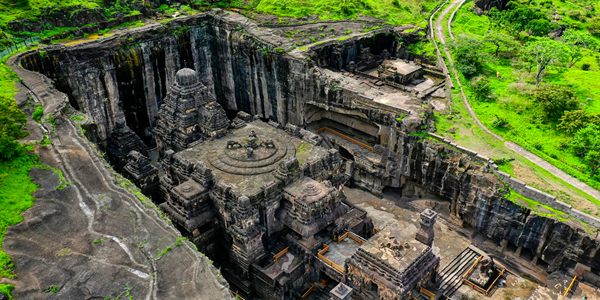 是跨越西元6至10世紀的石岩建築奇蹟。這座聯合國教科文組織世界遺產最獨特之處在於其宗教包容性,在長達2公里的玄武岩壁上,併列著34座石窟,分別屬於佛教(12座)、印度教(17座)及耆那教(5座)。其中最震撼人心的是第16窟—凱拉薩神廟Kailasa Temple。它是世界上最大的單體巨岩開鑿建築,由一整塊山體自上而下劈鑿而成,耗時百餘年,工程量與精緻度被譽為「神蹟」。埃洛拉石窟不僅展現了古印度高超的建築技術,更體現了當時三教共榮的文化精神。